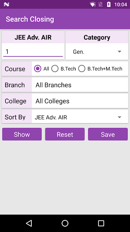 Branch Detail: The app shows a list of branches offered by various colleges. Easy filter to select your favourite branch. It shows number of colleges that offers your favourite branch with total intake.