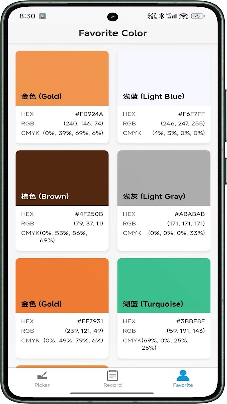 색상 선택기 - 카메라나 이미지의 색상을 인식하는 데 사용되는 애플리케이션입니다. 여러 색상 팔레트에서 색상을 식별합니다. 동적 범위. 범위를 조정하려면 화면을 스와이프하기만 하면 됩니다. 중심점의 색상이나 선택한 영역 전체의 평균 색상을 빠르게 확인할 수 있습니다. 원을 선택하면 실제로는 원 중앙의 십자 표시 지점에 해당하는 픽셀 색상을 기준으로 결정됩니다. 과학적인 색상 데이터를 확인하세요. 전문가 모드로 들어가려면 '세부정보 보기' 버튼을 클릭하세요. 색온도(켈빈도), 스펙트럼에서의 색상 위치, 다양한 색상 모델(RGB, CMYK, HSV 등)의 색상 값, 선택한 색상 팔레트에서 가장 유사한 색상의 색상 일치 정도(백분율)를 표시합니다. 이미지의 색상을 식별합니다. 이미지를 열고 이미지의 어느 부분에서든 원하는 색상을 인식/저장하세요. 저장된 색상을 사용하세요. 저장된 색상을 편집할 수 있습니다. 데이터베이스에서 색상을 검색하고 찾아보세요. 16진수 값이나 색상 이름으로 검색하면 데이터베이스에서 원하는 색상을 빠르게 찾을 수 있습니다. "공유" 시스템 대화 상자를 통해 데이터베이스를 검색하기 위해 응용 프로그램에 텍스트를 보낼 수 있습니다. 면책사항 색상 재현으로 인해 색상 샘플이 원본과 크게 다를 수 있습니다. 모든 색상은 참고용입니다. 고정밀 색상 일치가 필요한 장소에서는 이러한 값을 사용하지 마십시오. 스크린샷의 이미지는 AI에 의해 생성됩니다.