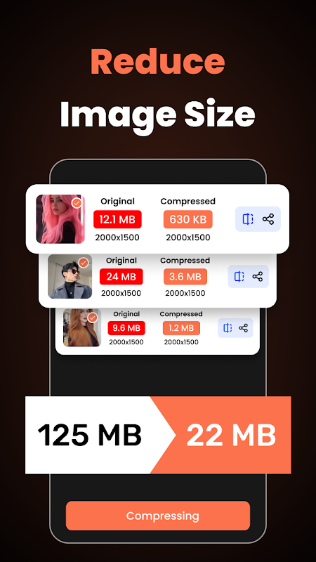 Image Compressor로 지금 바로 이미지 압축, 크기 조정, 변환을 시작하고 품질 저하 없이 사진을 더 작게 만드세요. 지금 다운로드하여 이미지 크기를 줄이는 가장 빠른 방법을 경험하세요!