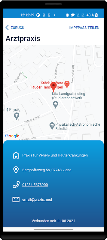 노란색 예방접종 증명서의 예방접종 데이터를 디지털 예방접종 증명서로 전송하고 진료실의 확인을 받을 수 있습니다. 예방 접종 관리 시스템 ImmunDocNE과 함께 작동하는 모든 관행이 현재 지원됩니다. ImmunPassDE의 실무팀에 문의하세요. 현장에서 의사 진료실과의 연결이 쉽습니다.