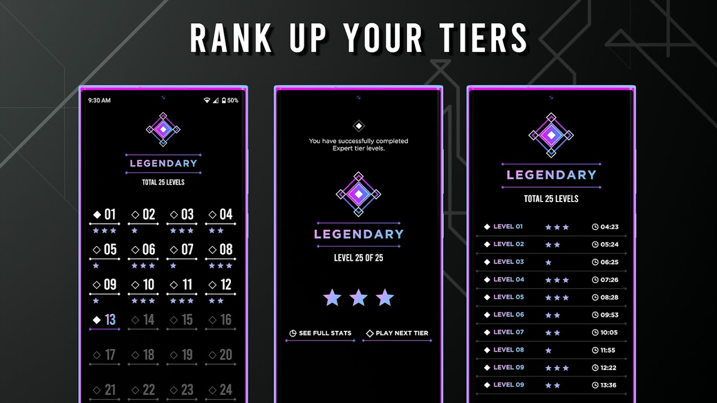 게임은 초보 레벨부터 전설 레벨까지 시작됩니다. 모든 무한 루프 퍼즐 게임을 완료한 후 무한 루프의 임의 퍼즐을 플레이할 수도 있습니다. 누구에게나 도전을 주더라도 복잡한 수준의 루프 퍼즐 게임을 얻을 수 있는 도전 모드도 있습니다.