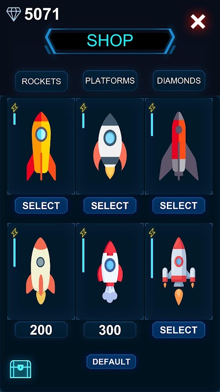 Tap button to release rockets and destroy all the platforms that comes down from space but be careful don't spam rockets on space or let platforms reach bottom because you will Lose.