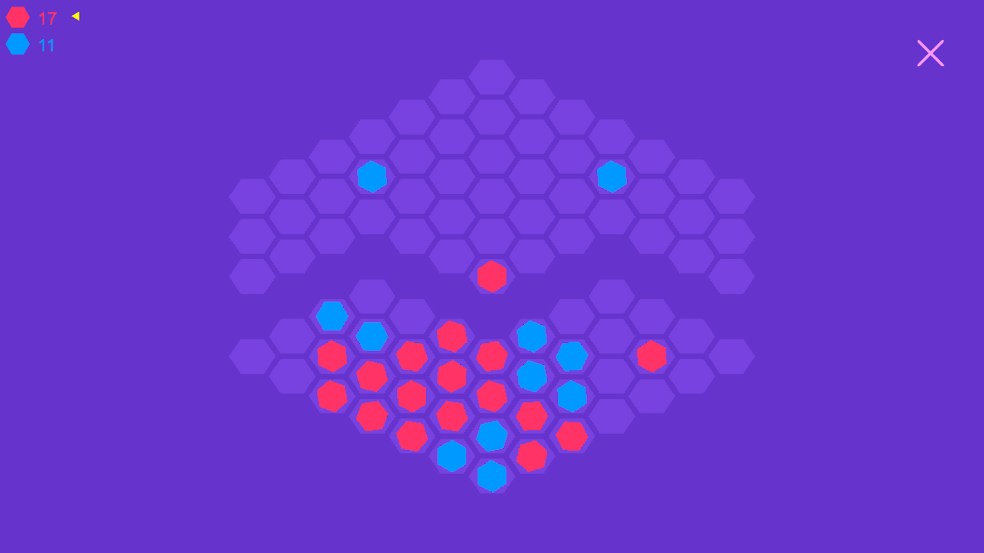 빨강과 파란 양측,6 각형 배열에서 빨간 측 첫째로,빨간 조각을 클릭 하 여 사용할 수 있는 모바일 위치를 표시,녹색 및 노란색 영역,녹색 위치를 클릭,조각 클릭 위치에 복사 됩니다,조각의 숫자 더하기 1,노란색 위치를 클릭 하면,전당포이 위치로 이동 합니다,조각의 수가 변하지.