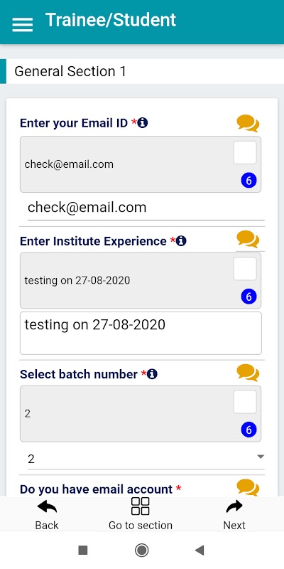 Reference parameters if required can be provided right below the question/Inspection parameter