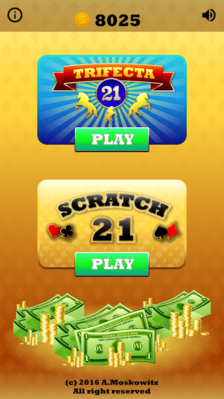 Scratch your cards with the corresponding House cards. If your matched cards add up to exactly 21 in a line win the prize for that line.