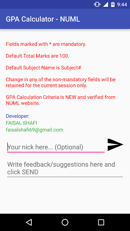 Easy app to calculate your GPA Instantly. Some apps so many input fields mandatory which can be confusing or irritating. This GPA Calculator lets you calculate your grades instantly. Not the most feature rich application but one of the easiest to use!
