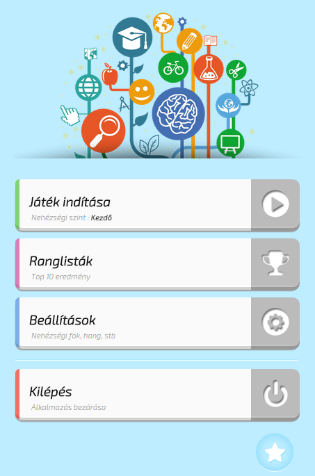 - több ezer érdekes kérdés 4 lehetséges válasszal. Minden kérdés egy helyes válasszal rendelkezik.
