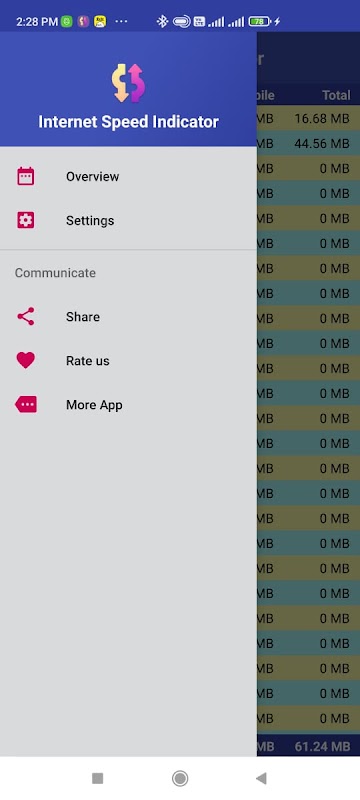 Internet Speed Indicator displays your internet speed in status bar and shows the amount of data used in notification pane. This will help you to monitor network connection anytime while using your device.