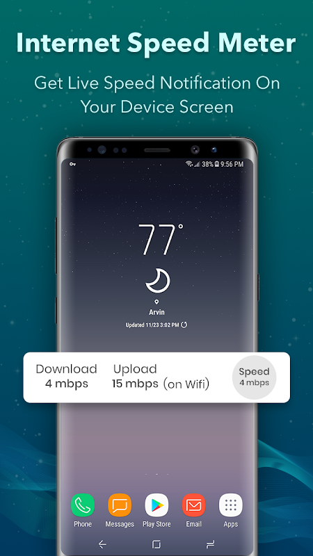 인터넷 속도 측정기는 인터넷 속도를 상태 표시 줄에 표시하고 알림 창에 사용 된 데이터 양을 표시합니다.
