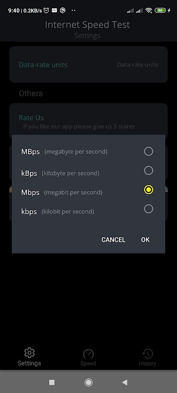 2G, 3G, 4G, 5G, WIFI 및 ADSL의 속도를 테스트 할 수 있습니다.