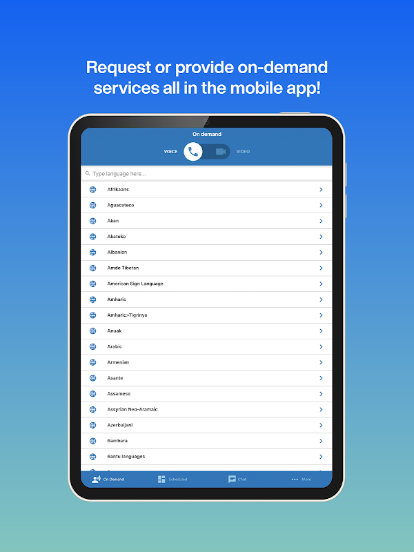 이 애플리케이션은 모바일 기기에서 편리하게 언어에 접근할 수 있도록 지원하며, Boostlingo Hub(BHub)에서 300개 이상의 전 세계 언어를 담당하는 10,000명의 전문 통역사에게 온디맨드 방식으로 접속할 수 있도록 합니다.