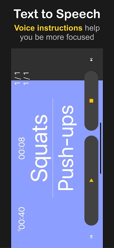 • 가로 및 세로 모드 모두에서 사용 가능한 전체 화면 진행률 표시줄을 통해 운동 진행 상황을 손쉽게 추적할 수 있습니다.