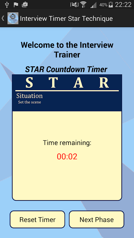 ✔ "STAR"스톱워치-답변 전략을 따르는 데 도움이되는 맞춤형 타이머.