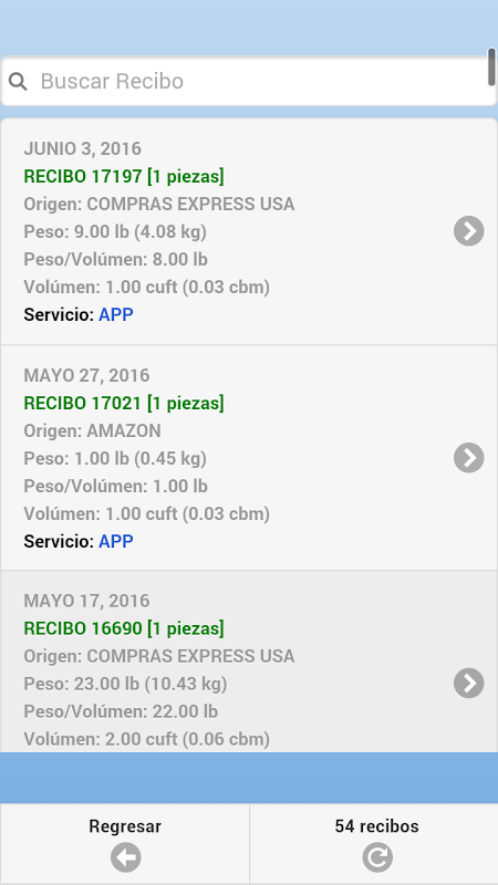 * Búsqueda de Recibos por Número de Recibo y/o Rastreo (Tracking).