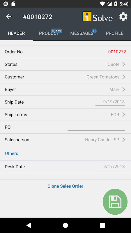 귀하의 iSolve는 판매 주문 관리를위한 동반자를 생산합니다.