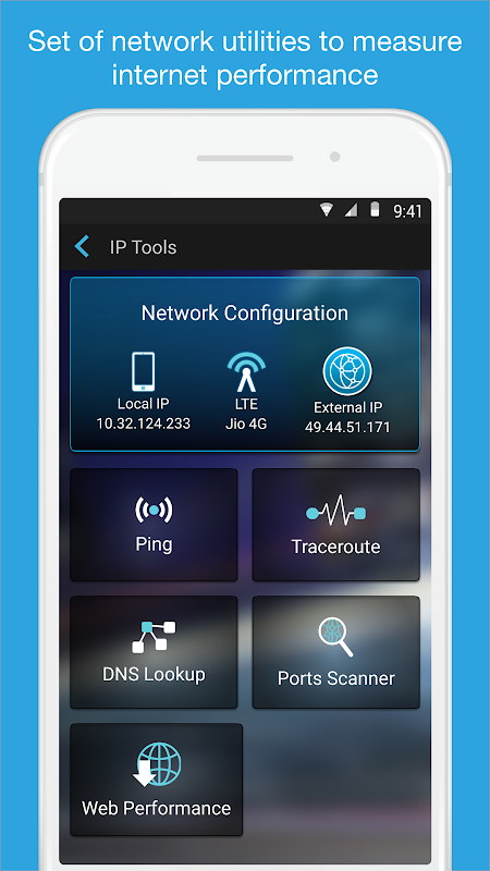사용자가 모바일 데이터 또는 Wi-Fi 네트워크에 인터넷 성능을 측정하는 IP 도구 이상적입니다