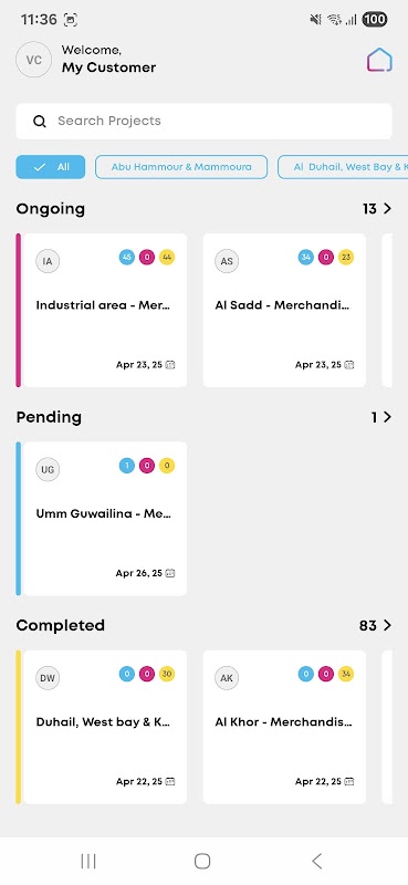 즉각적인 업데이트: 실시간 업데이트를 통해 프로젝트의 발송 및 설치 상태를 지속적으로 확인하세요. 모바일 장치를 통해 팀의 위치와 프로젝트 완료 상태를 즉시 알 수 있습니다.