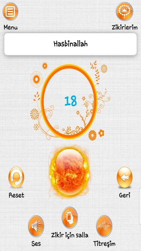 You Can store your value in phone database, so you can continue to your Dhikr at any time.