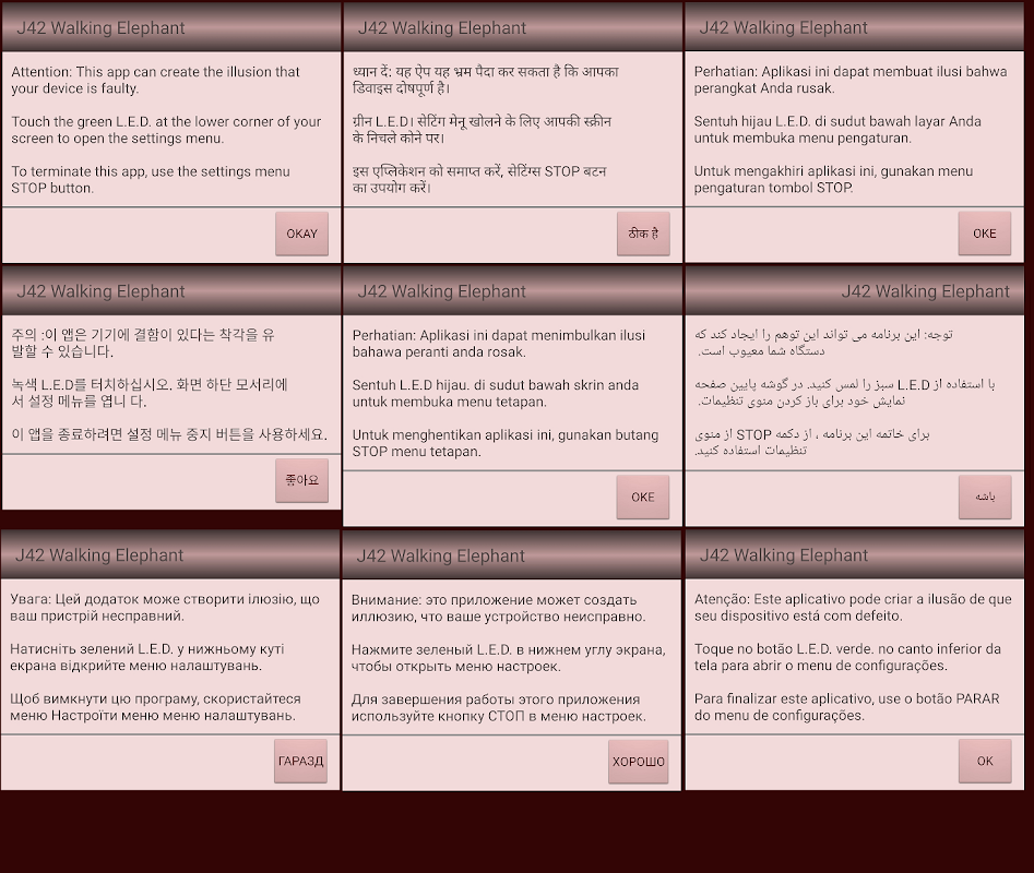 걷는 코끼리와 시뮬레이션 된 깨진 화면. 장난뿐입니다.