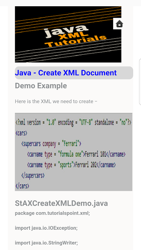 -> Learn Java XML TutorialsOffline App come with complete comprehensive and responsive layout.