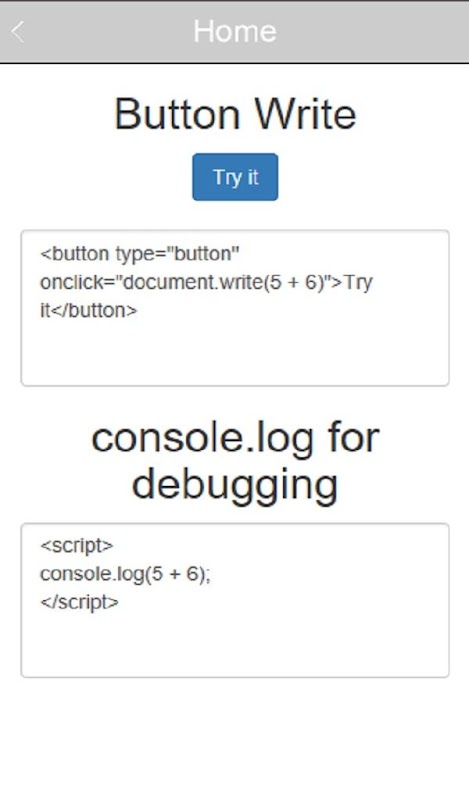 This is a free javascript programming app and is good for beginners to learn basic as well as advanced javascript programming. This javascript app for android can also be used for studying during exams as well as for interview questions.