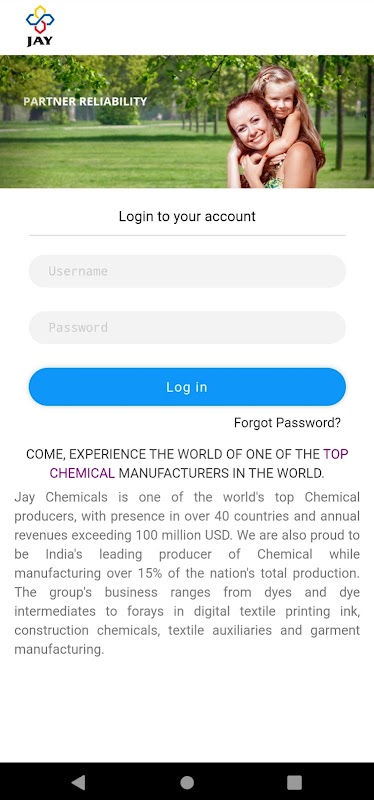당신은 한 번의 클릭으로 우리에 연결하는 데 도움이됩니다 "클릭"의 제이 화학 모바일 앱에 오신 것을 환영합니다. 지금 주문의 배치하면 그냥 클릭으로 우리의 딜러 / 고객 쉬워진다. JAY는 발주 계정 정보, 배송 정보, 보류중인 주문 세부 사항에 대한 대리점 / 고객에 직접 액세스 할 수 있도록이 응용 프로그램을 출시했다. "JAY에서 누르은"응용 프로그램입니다