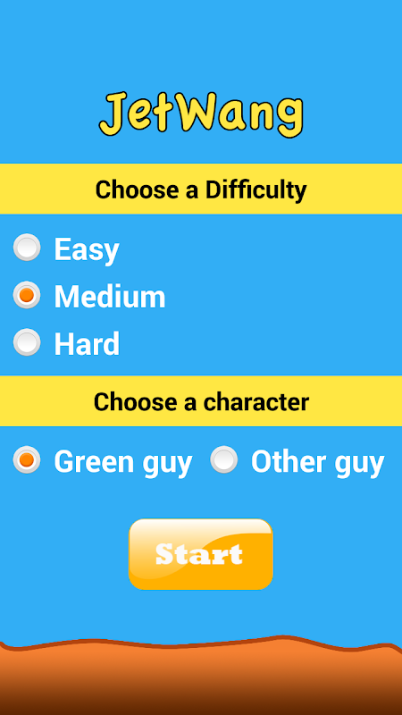 Jet Wang game to choose a Difficulty Level and character.