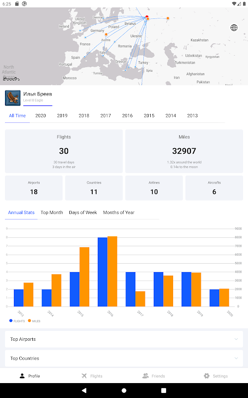 공중에서 얼마나 많은 시간을 보냈는지 궁금하신가요? 아니면 모든 비행을 합친다면 달에 도달할 수 있었을까요? 가장 긴 비행 시간, 가장 뜨거운 비행 달 또는 요일은 언제였습니까?