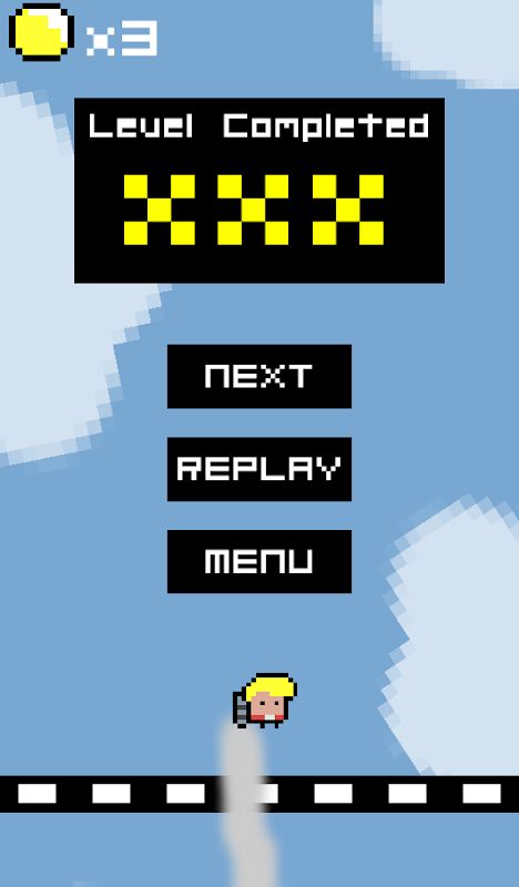 Who's the best jetpack rider? Complete 100 levels in this fast and adictive game. Use the accelerometer to get coins and avoid obstacles.