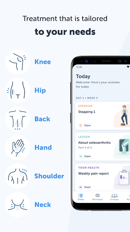 국제 지침에 따르면 골관절염 치료는 주로 특정 운동과 질병에 대한 교육(필요하다고 판단되는 경우 체중 조절)으로 구성되어야 합니다. 골관절염이 있는 모든 사람은 이러한 유형의 치료를 받아야 합니다. Joint Academy는 관절 통증을 줄이고 신체 기능을 향상시키기 위해 골관절염에 대한 디지털 1차 치료를 제공하기 위해 이러한 권장 사항을 따릅니다.