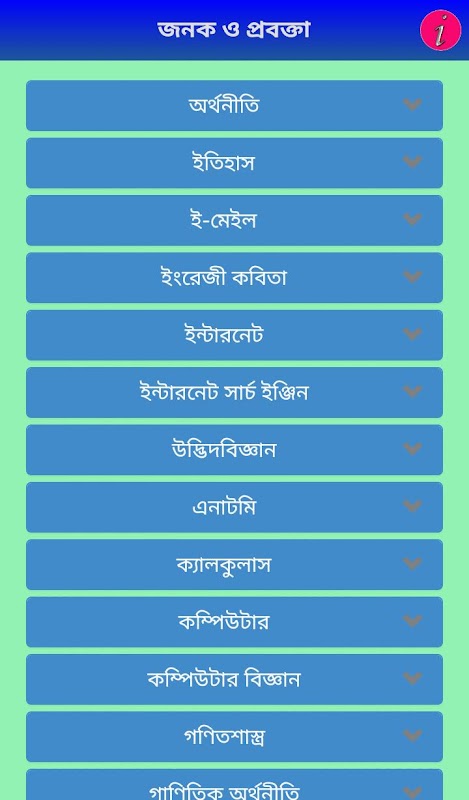 অ্যাপটির মাধ্যমে আপনারা বিভিন্ন বিষয়ের জনক (Father or Mother) কে জানতে পারবেন । যারা চাকুরীর জন্য পরীক্ষা দিচ্ছেন বা জানতে আগ্রহী তাদের জন্য অ্যাপটি অত্যন্ত কাজে লাগবে আশা করি ।।