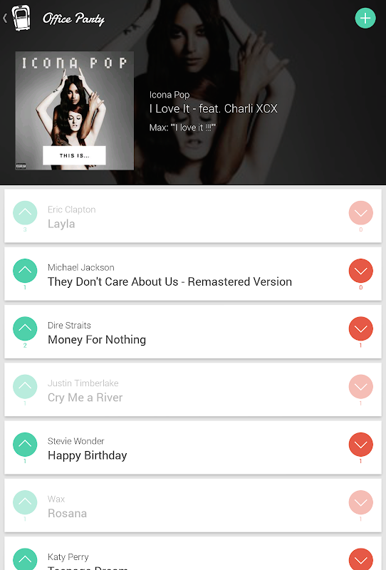 At your next party you and your friends will have millions of songs available. Jukebox for Spotify allows everybody to request favorite songs. You can change the order of the playlist by voting songs up and down. So your party always runs the right music.