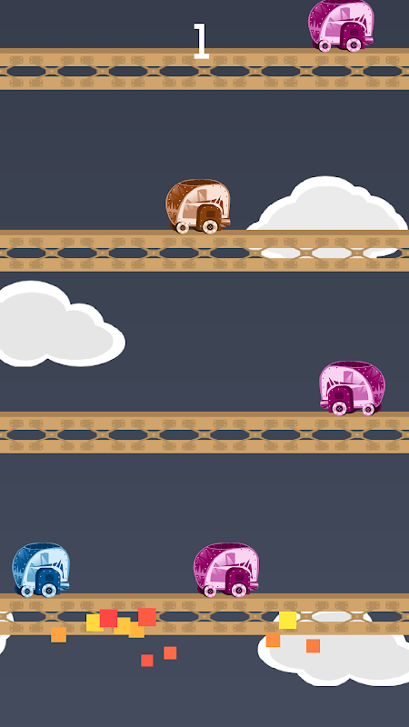 Simple, but not easy! Different colored wagons are moving at different speeds. As you get higher, the game gets harder. You can even overjump a wagon, but it requires special skillset! Can you do it?