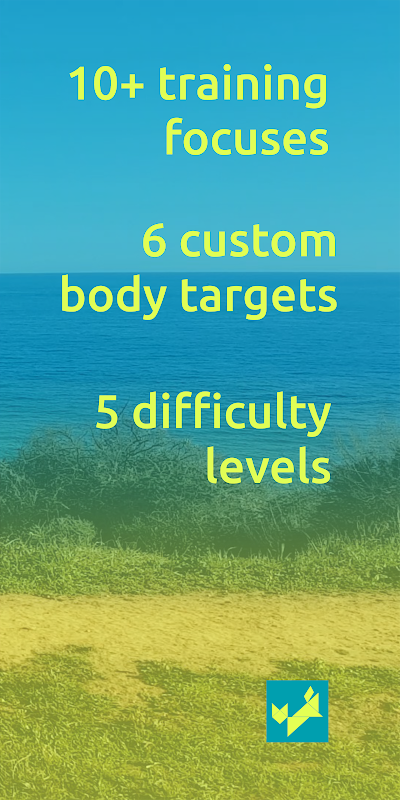 💯 100's of fun functional bodyweight exercises combining aerobics, yoga, pilates, strength training, boxing, ballet, dance, animal movements and more for never-ending variety.