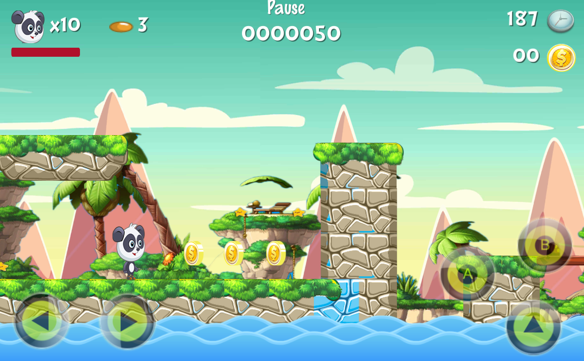 놀라운 고전적인 측면 게임 "정글 팬더 실행"당신은 러너 동전 킵 점프해야