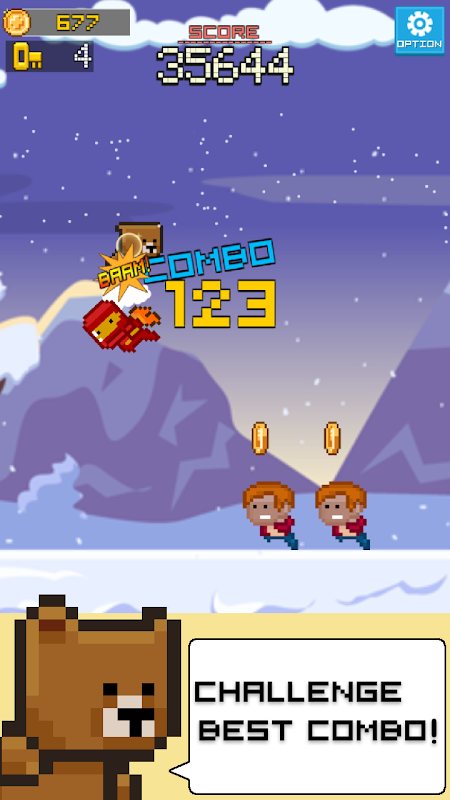 멈추지 않고 달리는 곰을 터치해서 점프, 더블 점프로 사람의 머리를 밟습니다.