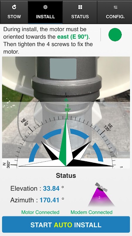 응용 프로그램은 KA-SAT 포인터와 같은 기능을 가지고 있습니다, 그것은, 포인팅 안테나를 최적화 구성하고 자신의 스마트 폰을 사용하는 컴퓨터없이 모뎀을 활성화 할 수 있습니다. 응용 프로그램은 또한 배포자가 사진과 함께 인증 및 보안 설치 보고서를 얻을 수 있습니다.