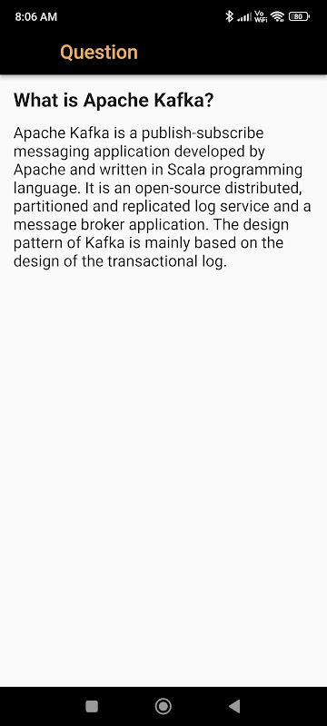 Kafka 인터뷰 질문: Kafka에 특별히 관심이 있는 사람들을 위해 Kafka 개념에 초점을 맞춘 100개 이상의 질문이 포함된 전용 섹션이 앱에 포함되어 있습니다. Kafka 인터뷰 시나리오Kafka에서 지식을 심화하고 자신감을 높이십시오.