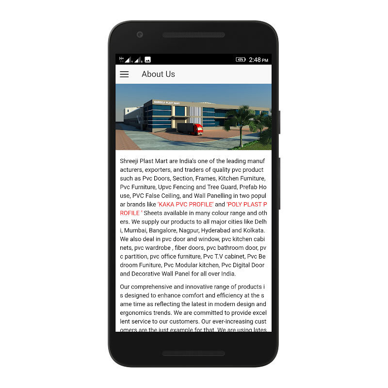 This application will help you to overview our pvc products portfolio with all technical specifications. you have an opportunity to select & contact us for your requirements & needs. Wide range of pvc products are available for doors,windows, kitchen cabinets & many more.