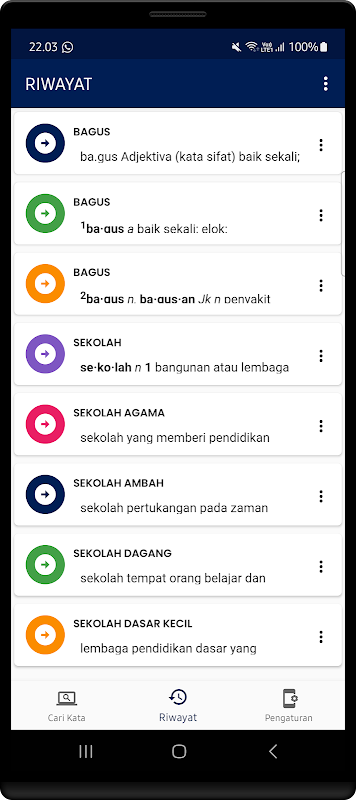 이 인도네시아어 KBBI 사전 응용 프로그램은 인도네시아어 단어를 매우 쉽게 찾기 위해 논문이나 저널 또는 기타 과학적 작업을 수행하는 사용자에게 적극 권장됩니다.