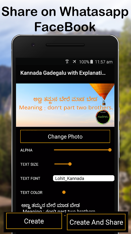 You can share Everywhere , Now you can share kannada proverbs with your photo on whatsapp , FB ......