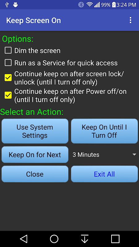 내가 끌 때까지 2 - 당신이 전화를 끄거나 절전에 전화를 넣어 때까지 화면을 유지합니다.
