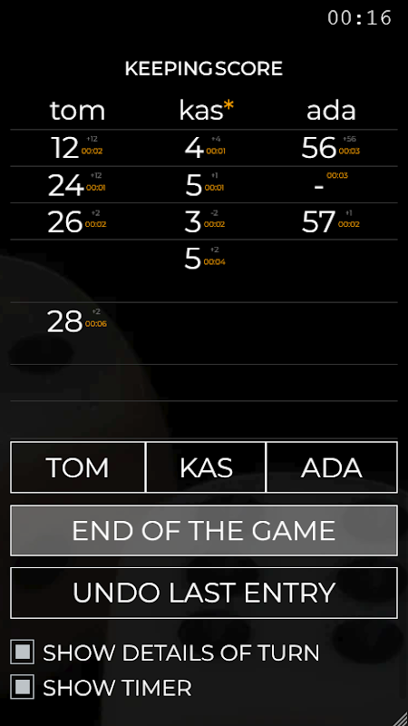 The online scoreboard allows you to save the results of any game. It can be used in card games, board games, scrabble - wherever there is a need to record the results. The scoreboard sums up the points in the game for you and additionally measures the playing time of individual players. In addition, it works in offline mode, you do not need to be connected to the Internet, the results are remembered on the fly.