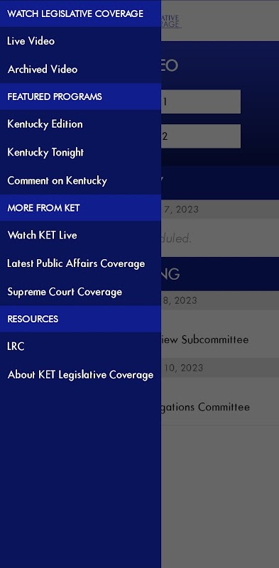 입법위원회 회의 및 챔버 세션, 입법 업데이트, 켄터키 오늘의 라이브 및 보관 비디오, 켄터키 총회를 수행 한 켄터키에 대한 코멘트.