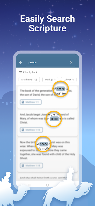 • 수 세기 동안 신뢰받아 온 킹 제임스 성경(KJV) 전권을 이용할 수 있습니다.