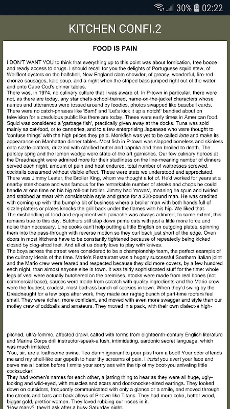 A.B was such a talented writer; his passion and enthusiasm for food and crazy kitchen and his environment was so palpable that at times I felt like I too was trudging alongside him in the kitchen. This book is broken into numerous chapters that depict everything from his trouble with drugs and story kitchen, to the co-workers that made their mark on him (either good or bad) to what one should consider when ordering certain dishes in a restaurant. It truly was a behind the scenes look at kitchen life and I found myself excited to get a sneak peek into this world that even as a server I'm not always quite indepthly privy too.