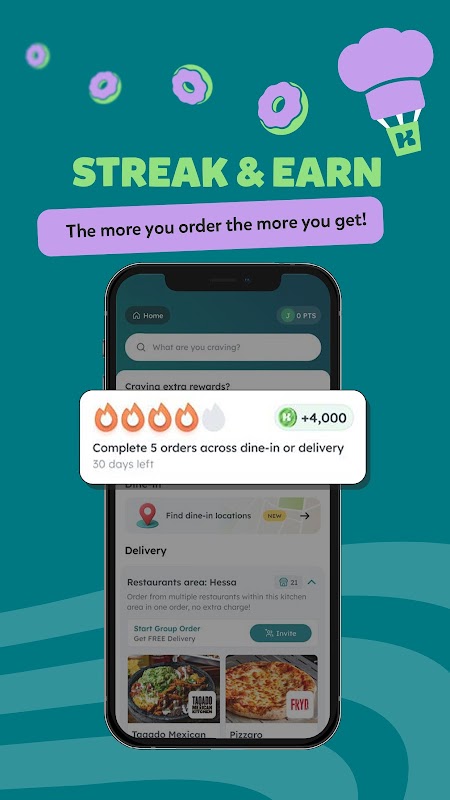 매장에서 식사하거나 배달 주문을 하시면 모든 주문에 캐시백, 포인트 또는 연속 보너스가 적립됩니다. 갈망과 목표를 한 번에 달성하세요.