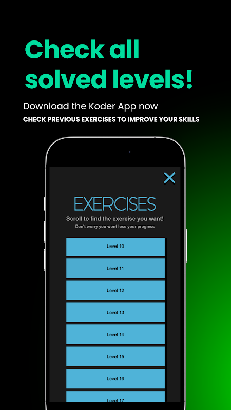 부피가 큰 코스나 지루한 튜토리얼과 달리 Koder는 순전히 실습에 중점을 두고, 실행을 통해 배우고, Python 기술을 더 빠르게 강화합니다.