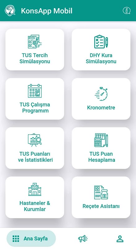 KonsApp, hekimler için TUS Tercih Simülasyonu, TUS Kronometre, DHY Tercih Simülasyonu, Reçete Asistanı özelliklerini bir arada sunan bir platformdur.