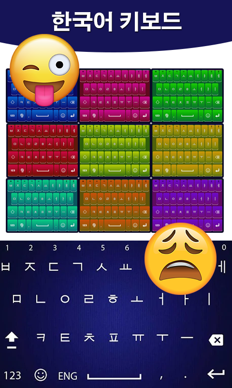 모든 한국어 문자와 단어를 매우 빠르고 쉽게 쓸 수 있습니다. 1,000 개가 넘는 이모지가있는 영어 및 한글 키보드 는 문자 메시지에 무료로 사용할 수 있습니다.